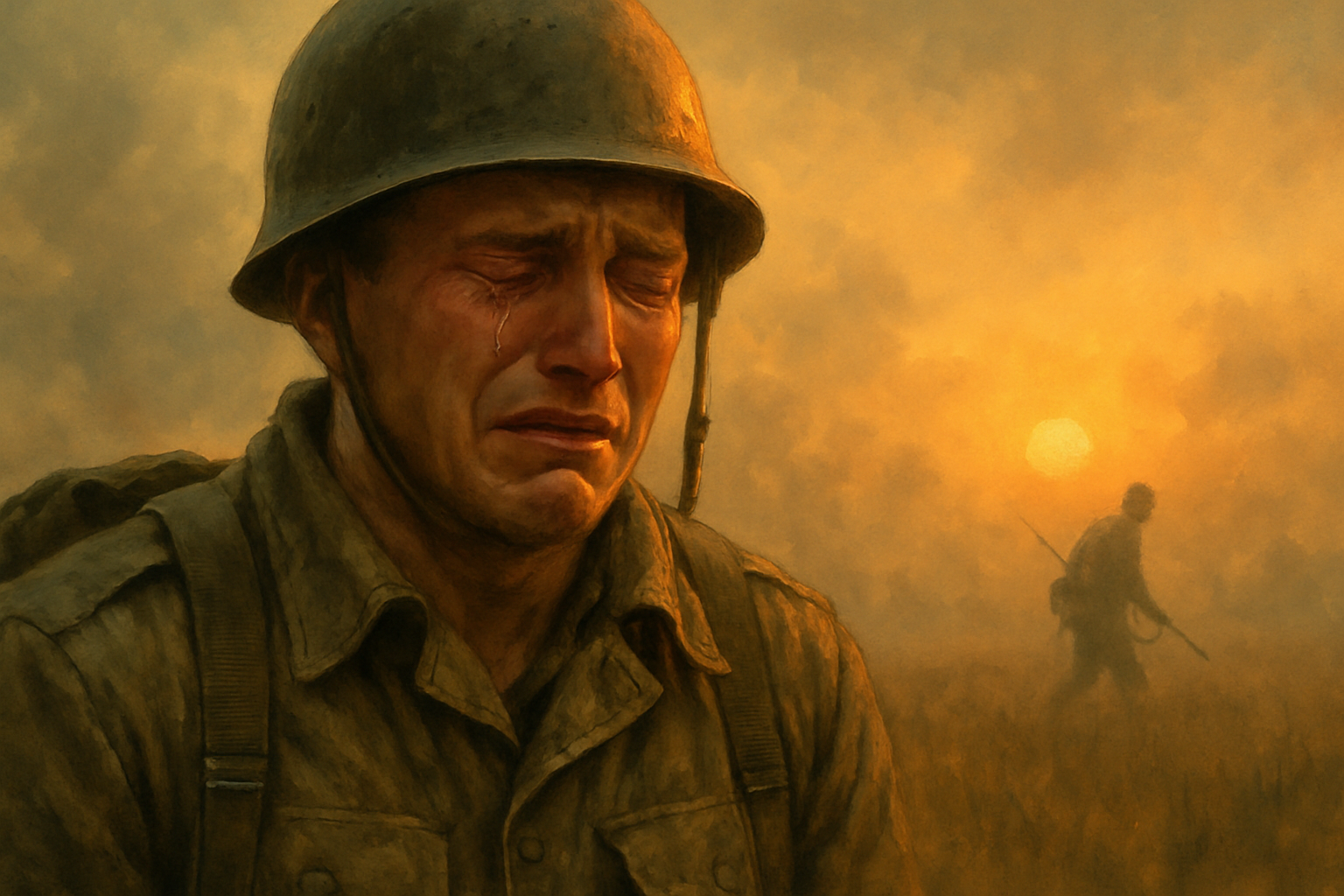 Dicen que en el campo de batalla se vio a un soldado llorar.